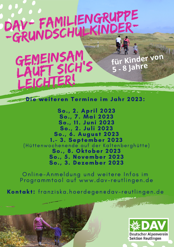 Nähere Infos zu den Treffs und Terminen stehen im Programmtool auf unserer Homepage. Die Anmeldung erfolgt online. Rückfragen gerne per Mail an: franziska.hoerdegen@dav-reutlingen.de