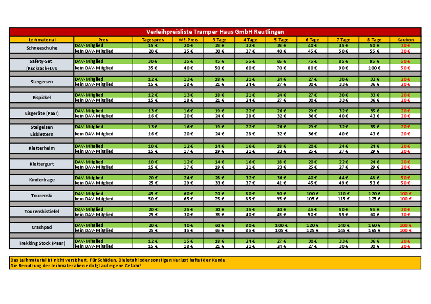 - Ausrüstungs-Verleih